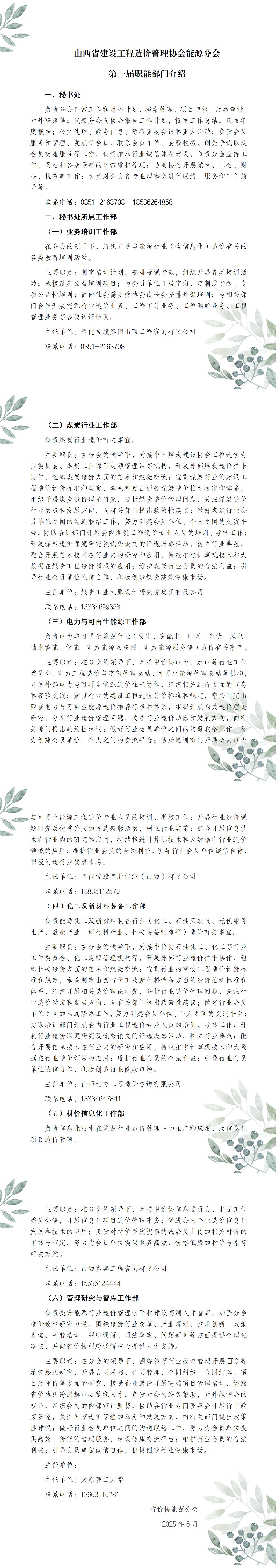 关于山西省建设工程造价管理协会能源分会设立理事会业务工作部的通知