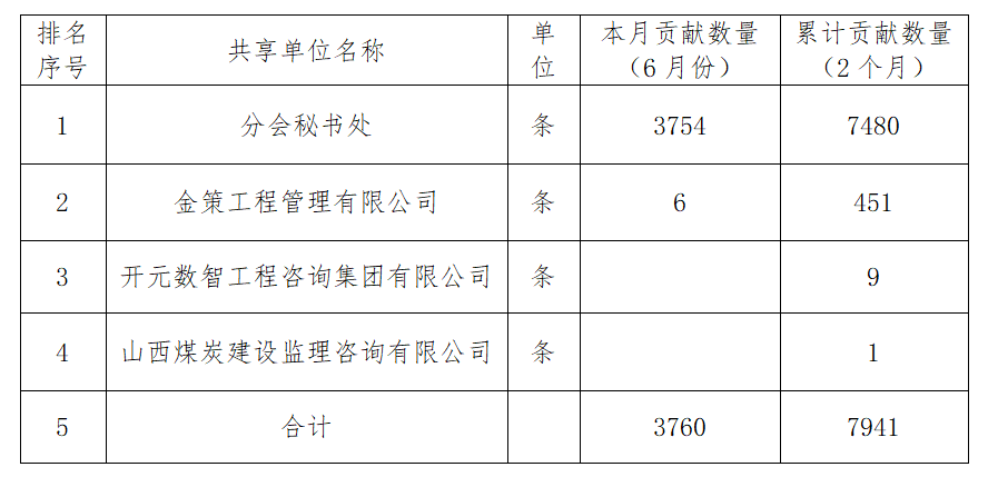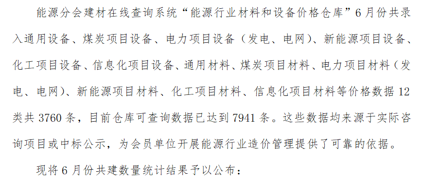 能源分会建材在线查询系统 “能源行业材料和设备价格仓库”6月份共建数量 统计结果公布